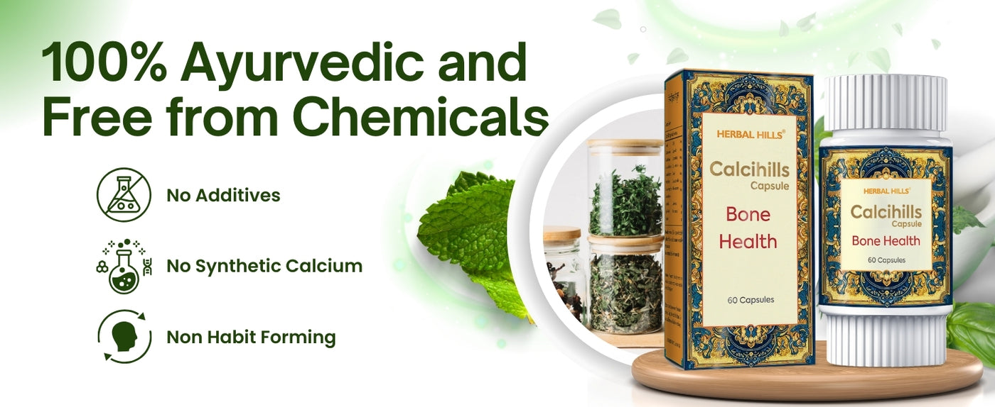 Calcihills Capsules are a Ayurvedic calcium supplement for men and women, specially formulated to support strong bones, teeth, and overall skeletal health