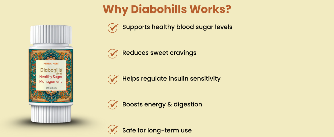 Diabohills Ayurvedic Tablets for Blood Sugar Support – With Gudmar, Jamun, Belpatra – 60 Tablets