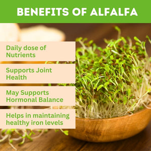 Known as the "Father of All Foods," Alfalfa is nature's treasure trove of vitamins, minerals & plant nutrition! This daily green superfood tablet keeps you nourished, energised & naturally thriving — the green way to daily wellness!